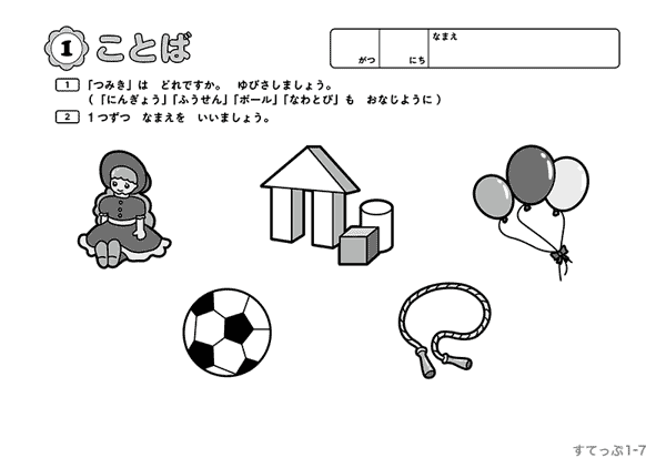 すてっぷは1から7まであり、ジャンルも言葉、数、図形、記憶、知識、作業、読み物など各ジャンルに分かれています。