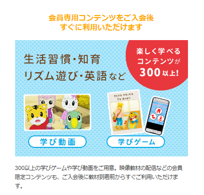 こどもちゃれんじは、知育のみならず、月々の教材量が豊富なので、季節に応じた行事や、月齢に応じた生活習慣の学習を漏れなく行うことができる点が強みです。ご家庭で毎月、行事漏れを心配する必要がないのは大きいです。更に、生活習慣、知育、遊び、英語など学習をフォローするWEB教材もついてきます。これがあれば、他の知育は不要になるはずです。