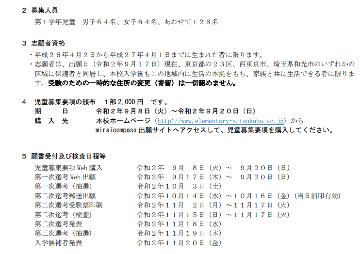 本日2020年8月9日、ややフライングですが筑波大学附属小学校の試験概要が開示されました(日付は8月10日付)