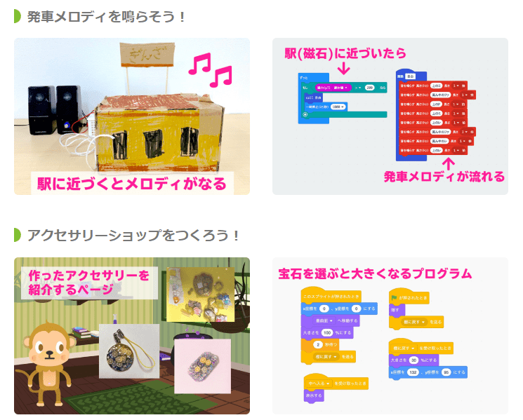 | 小4 ~ 小6 | micro:bit WEBアプリケーション Scratch CodeMonkey | 本格的なプログラミングにチャレンジし、粘り強く創作・問題解決できるように学ぶ ↓ 関数や配列、通信などを学び、プログラミングの奥深さを興味につなげる。 |
