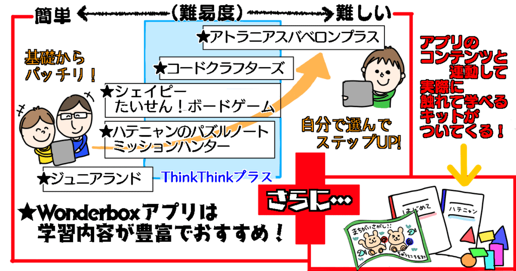 タブレット学習のうち、図形・論理的思考においてはワンダーボックスも人気です。