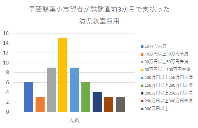 【アンケート】慶應幼稚舎・横浜初等部・早実初等部・雙葉小学校受験予定のご家庭に伺います。夏期講習と直前期(7月下旬~10月下旬)の幼児教室費用総額を教えてください。