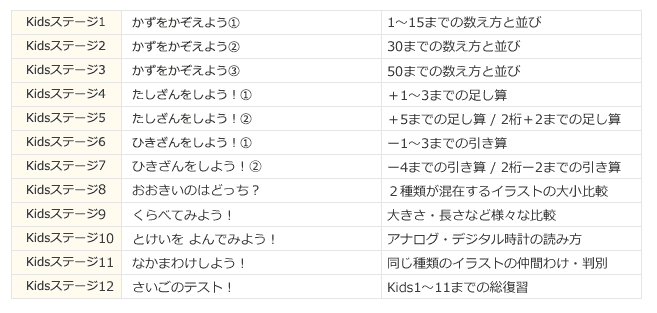 | 費用 | 2,480円/月 | ・後継の小学校向けRISU算数は進度に応じてお金がかかる。 ・タブレット幼児教材の中では最安 |