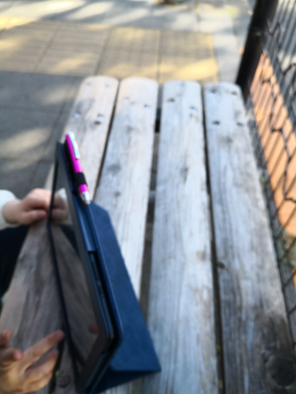 下図は外出中でバスを待っている間の様子ですが、RISUなどのタブレット教材は移動中や待ち時間などのスキマ時間でも学習できます。