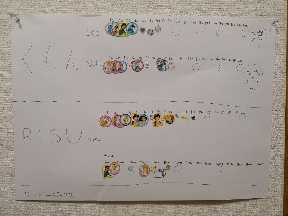 我が家では、公文とRISUは終わるごとにシールを貼って進捗がわかるようにしています。
