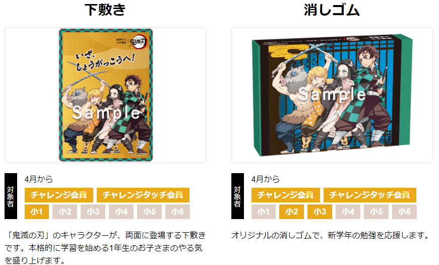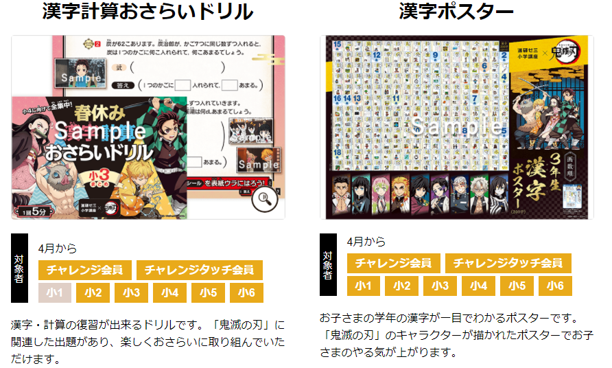 なお、進研ゼミ4月号で予定される鬼滅コラボ教材配布はこちら。