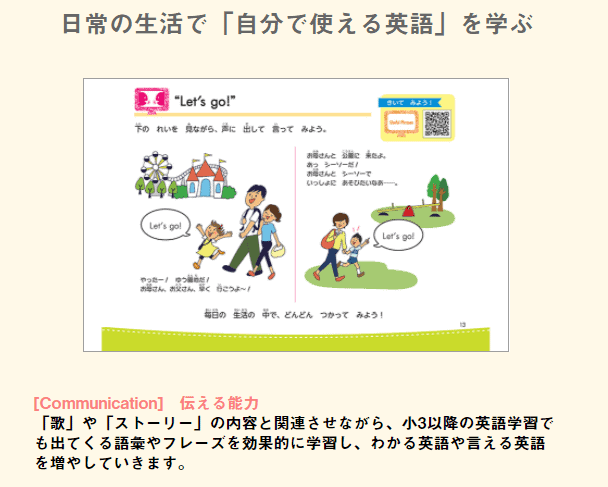 小学校2年生で取り組む英語教材です。 QRコードを用いて、聞きながら学習することが可能です。