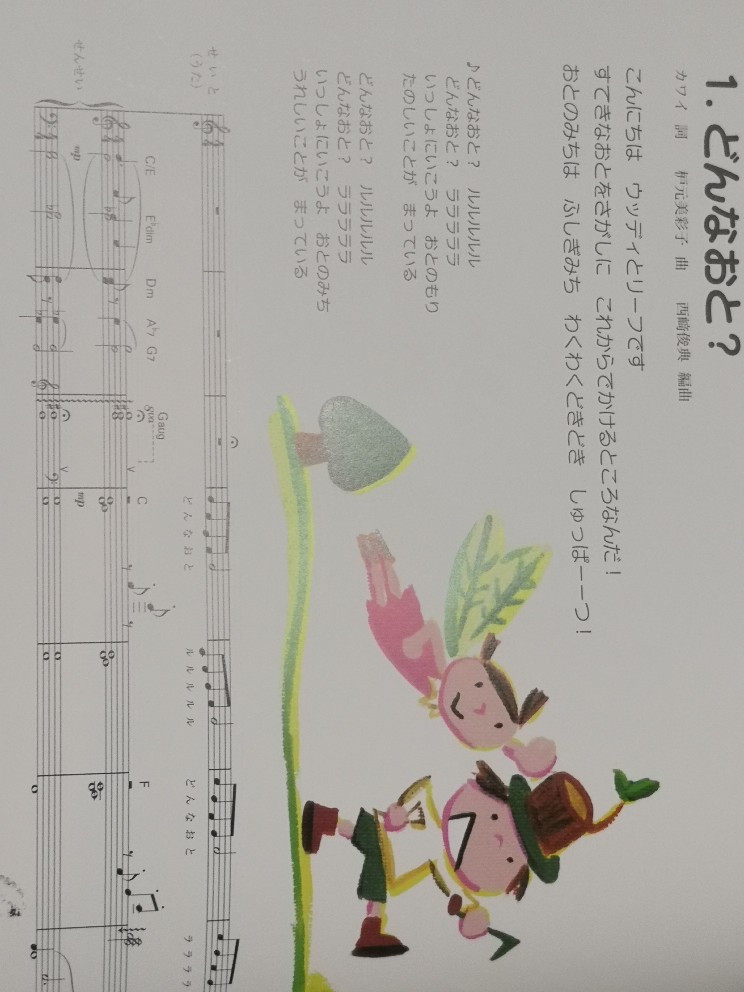 ・テキストを使って、歌を歌いながらピアノを弾く練習。