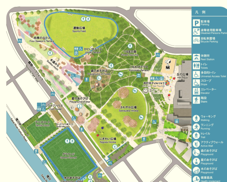 グランベリーパークの奥に位置する非常に大きな公園です。グランベリーパークは非常に混雑していてレストランが一杯です。何かお弁当を買ってここで食べれば、アウトレットパークにつきものの、フードコード難民にならずに済みますので非常に家族連れにとって助かるポイントです。