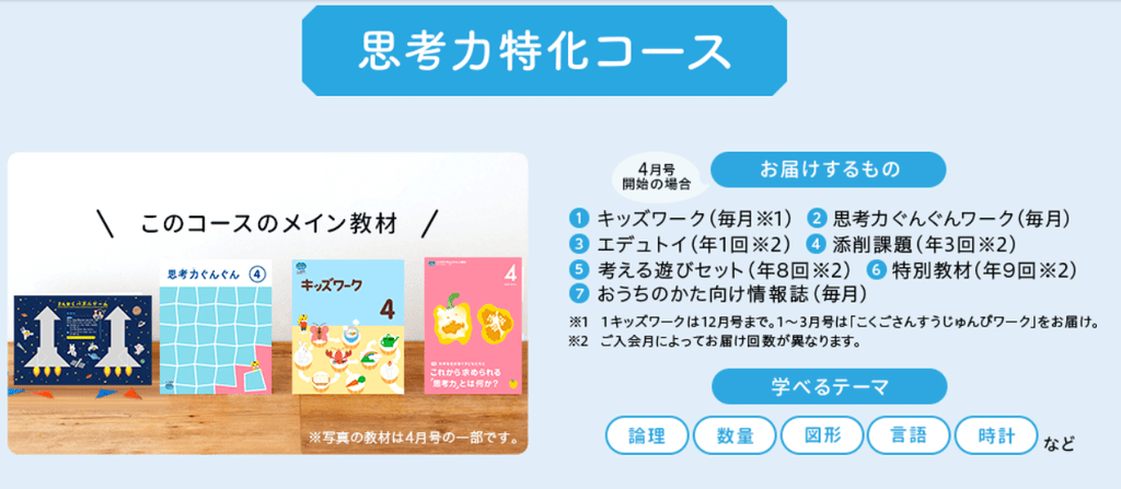 今思えば、総合コースにオプションの知育コースを加えて申し込んでも良かったかなと考えます。